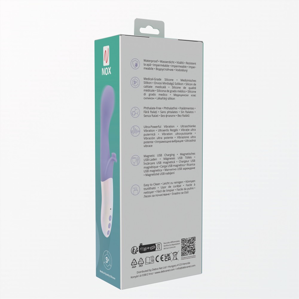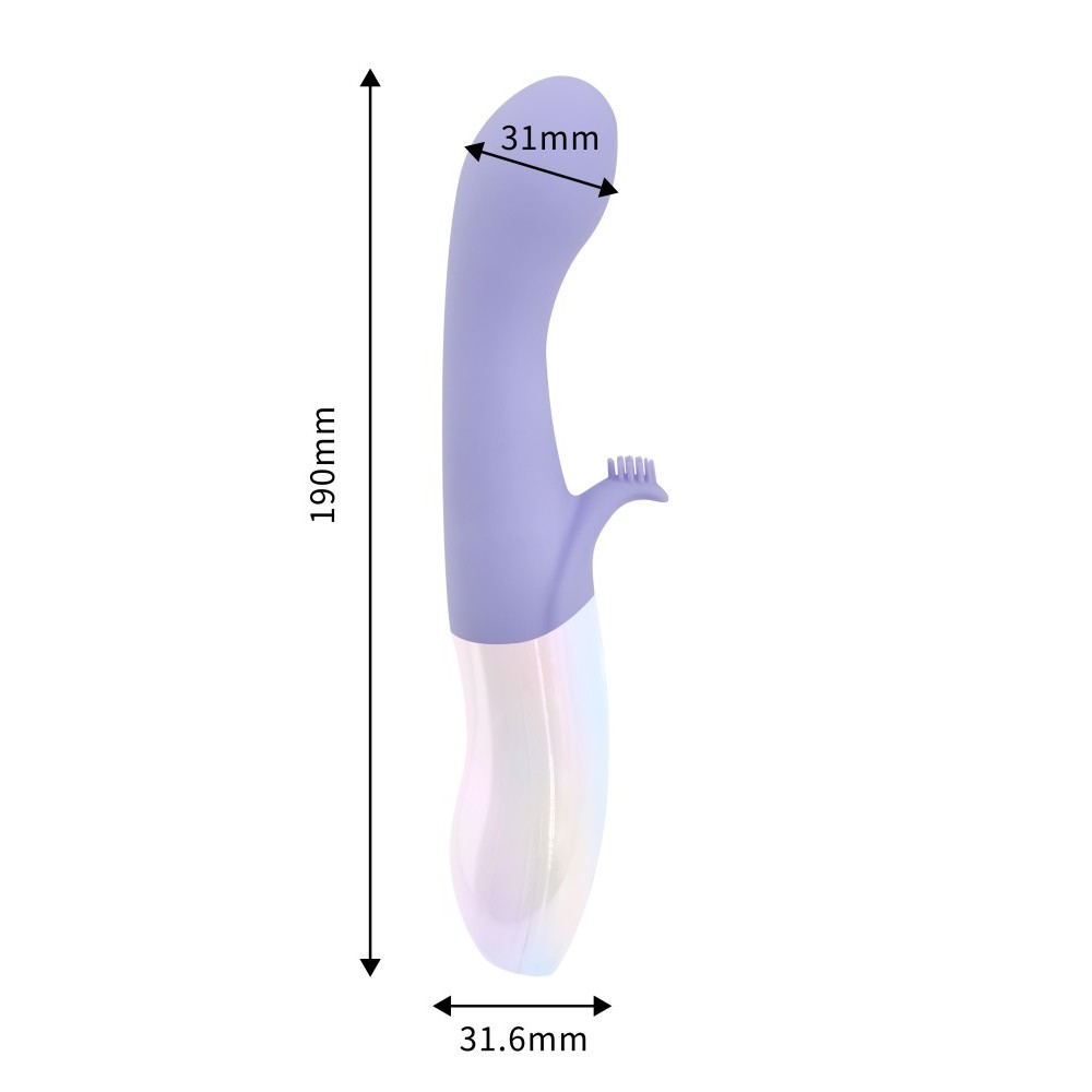 Ovaj ergonomski dizajnirani vibrator, sa 10 veoma snažnih programa vibracije, obložen je medicinskim silikonom, te ima glatku, svilenkastu površinu i ostavlja prijatan dodir na koži. Pogodan je za stimulaciju G tačke i istovremenu stimulaciju klitorisa, a odlikuje se izuzetno jednostavnim korištenjem. Magnetni punjač sa USB portom je uključen u pakovanje. Ukupna dužina igračke je 19 cm, a dio koji penetrira dug je 10 cm. Prečnik je 3.1 cm. Čišćenje: prije i poslije svake upotrebe, operite mlakom vodom i antibakterijskim sredstvom (npr. za čišćenje pribora za jelo). Preporučuje se lubrikant na bazi vode za maksimalno prijatne stimulacije.