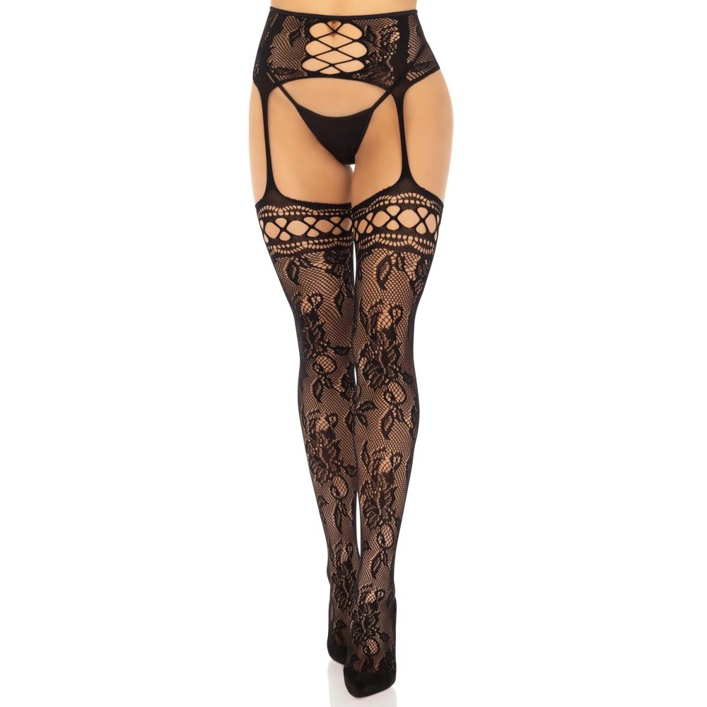 French Rose Backseam Garter Belt Stockings by Leg Avenue