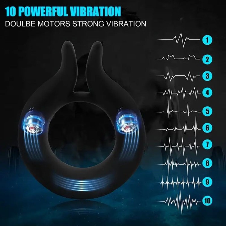 USB napajanje, vibrirajući prsten za penis, dvostruki motori sa uzoraka 10 vibracije, mek, silikonski, punjiva litij-ionska baterija 240mAh, za muškarce, parove, seks igračka za odrasle koja usrečuje dvoje. Kabal za punjenje dolazi u pakovanju.